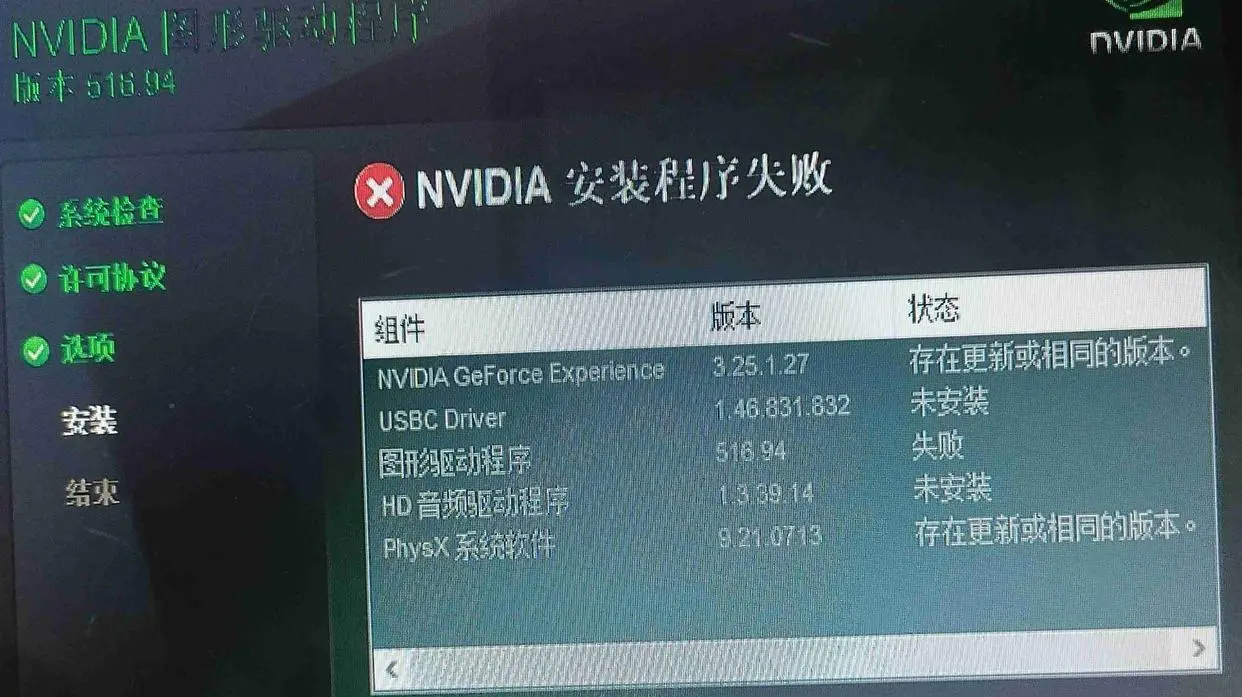 Nvidia顯卡安裝失敗,提示存在更新或相同版本的驅動程序,怎么辦